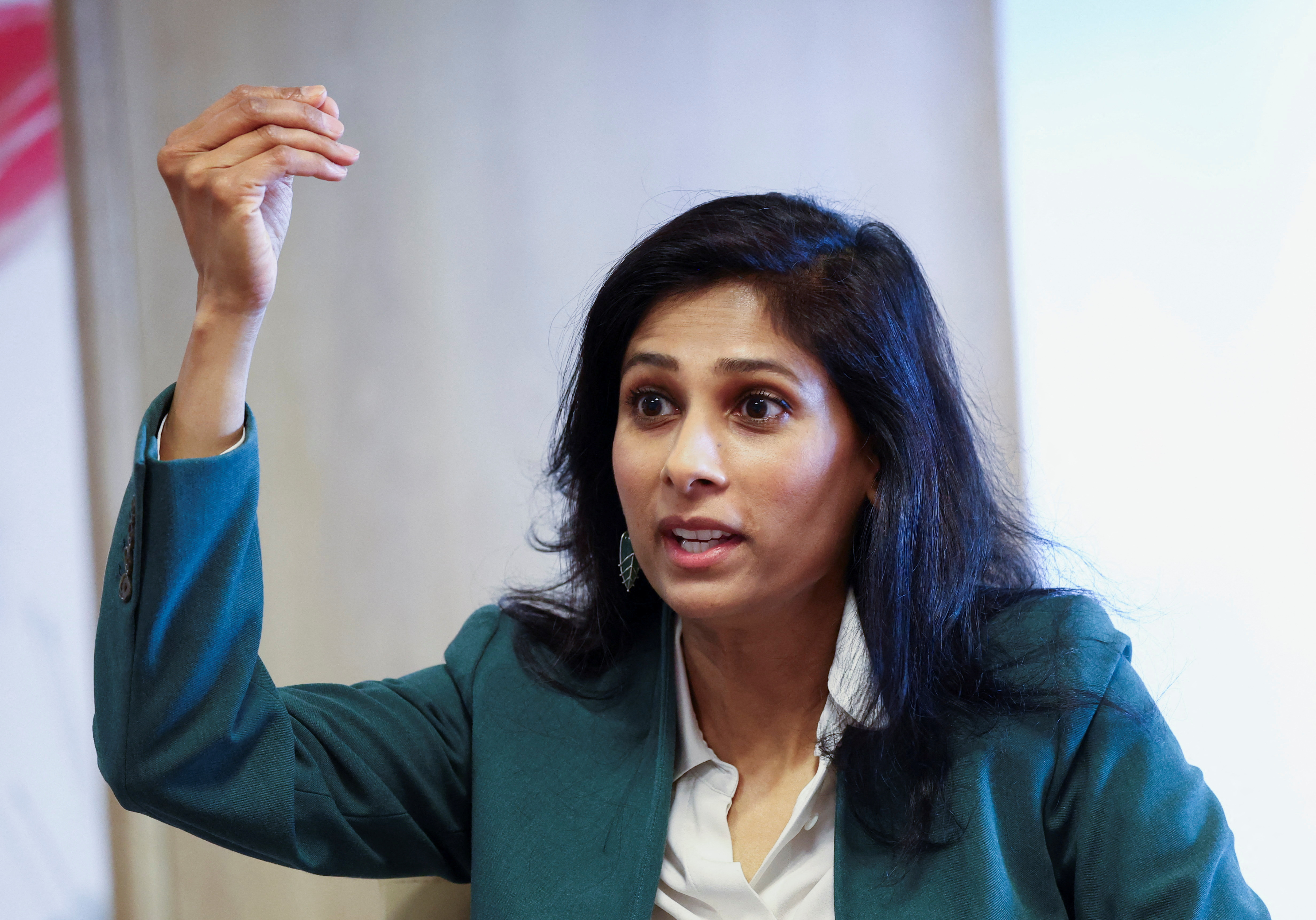 First Deputy Managing Director of the International Monetary Fund, Gita Gopinath, speaks during an interview at the South African Reserve Bank's Biennial Conference in the Cape Town International Convention Centre, South Africa, September 1, 2023. REUTERS/Esa Alexander Acquire Licensing Rights