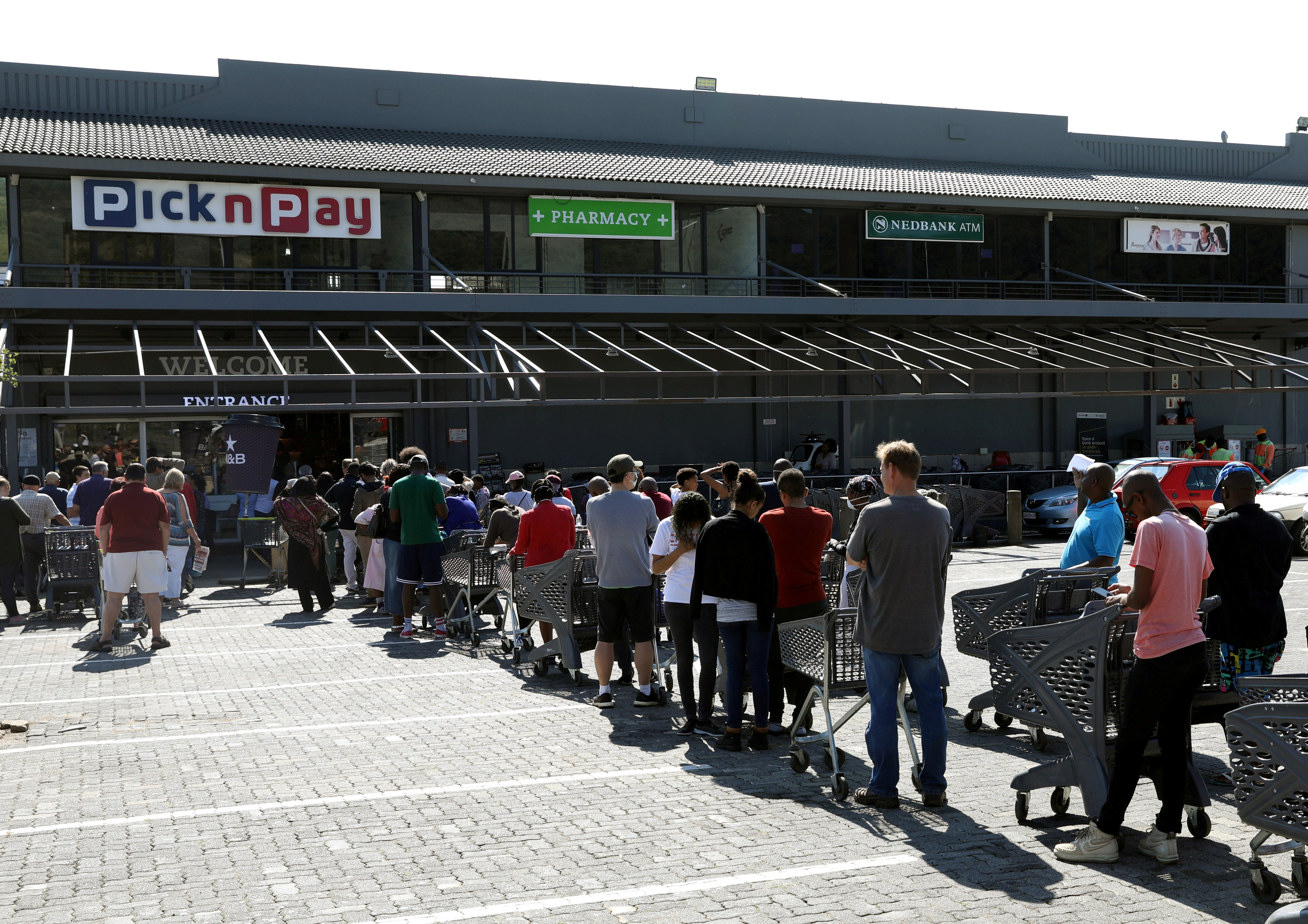 Shoppers queue to stock up on groceries at a Pick n Pay store during a nationwide lockdown of 21 days to try to contain the coronavirus disease (COVID-19) outbreak, in Johannesburg, South Africa, March 24, 2020. REUTERS/Siphiwe Sibeko -